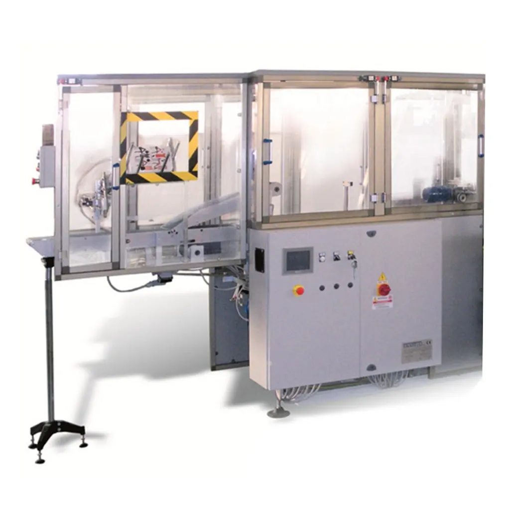 Macchina molto semplice, ideale per abbinamento con imbustatrice B50 per inserimento prodotto in buste di cartone. Possibilità di carico automatico (in abbinamento con una macchina per fissaggio) e/o manuale tramite operatore. Lunghezza della piega programmabile elettronicamente. Formazione busta da bobina di film aperta Velocità massima della macchina: 12 buste/minuto.